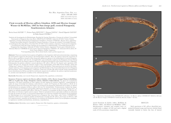 First records of Myxine affinis Günther, 1870 and Myxine knappi Wisner & McMillan, 1995 in San Jorge gulf, central Patagonia,Southwestern Atlantic