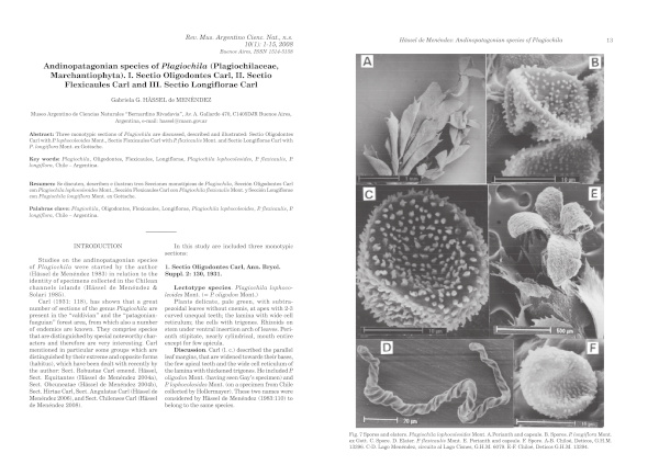 Andinopatagonian species of Plagiochila (Plagiochilaceae, Marchantiophyta). I. Sectio Oligodontes Carl, II. Sectio Flexicaules Carl and III. Sectio Longiflorae Carl