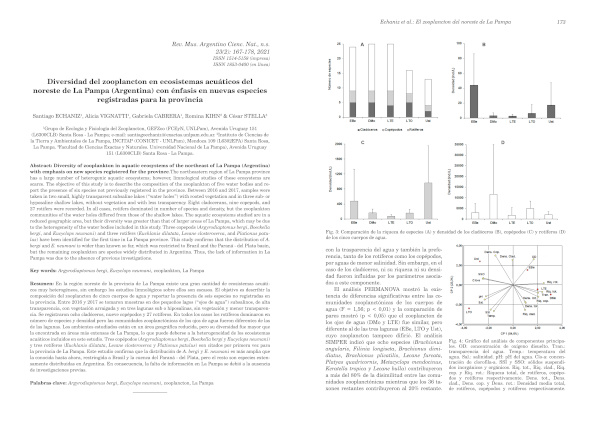 Echaniz, S., A. Vignatti, G. Cabrera & F. Torres. 2019 Zooplankton and limnological parameters dynamics in a mesosaline lake of a protected area in the semi-arid Pampa of Argentina. Sustainability, Agri, Food and Environmental Research 7(3): 261-280.