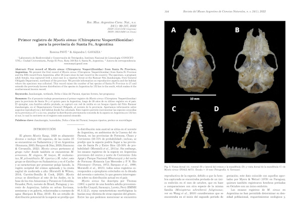 Pavé, R. A.I. Gavazza, J. de Souza & A.R. Giraudo. 2021. Nuevos registros de murciélagos (Mammalia: Chiroptera) para las provincias de Entre Ríos y Santa Fe, Argentina. Revista del Museo Argentino de Ciencias Naturales n.s. 23: 15-25.
