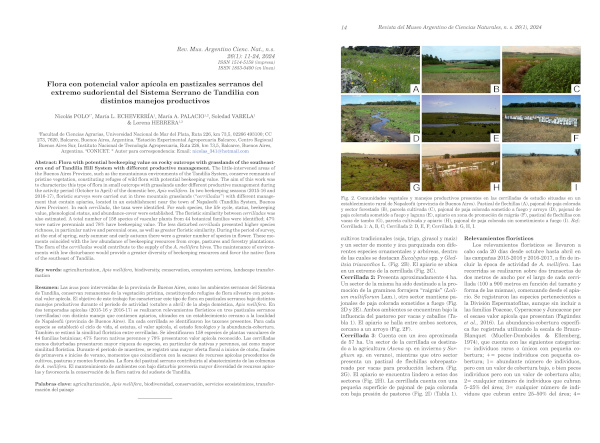 Flora con potencial valor apícola en pastizales serranos del extremo sudoriental del Sistema Serrano de Tandilia con distintos manejos productivos