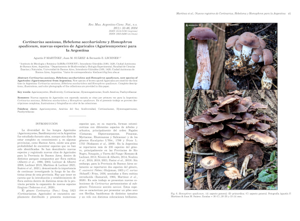 Cortinarius saniosus, Hebeloma sacchariolens y Homophron spadiceum, nuevas especies de Agaricales (Agaricomycetes) para la Argentina