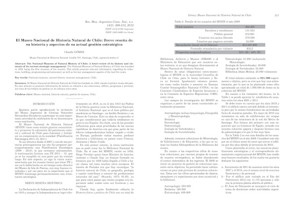 El Museo Nacional de Historia Natural de Chile: Breve reseña de su historia y aspectos de su actual gestión estratégica
