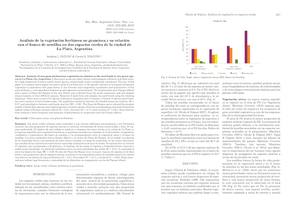 Análisis de la vegetación herbácea no gramínea y su relación con el banco de semillas en dos espacios verdes de la ciudad de La Plata, Argentina