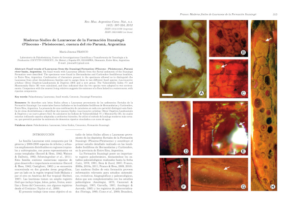 Maderas fósiles de Lauraceae de la Formación Ituzaingó (Plioceno - Pleistoceno), cuenca del río Paraná, Argentina