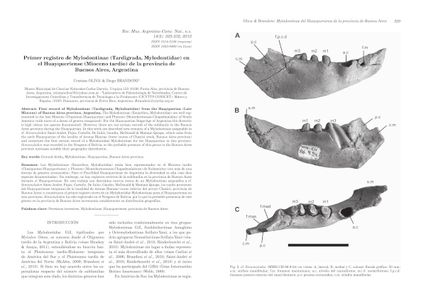 Primer registro de Mylodontinae (Tardigrada, Mylodontidae) en el Huayqueriense (Mioceno tardío) de la provincia de Buenos Aires, Argentina