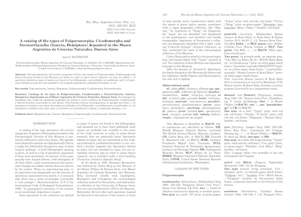 A catalog of the types of Fulgoromorpha, Cicadomorpha and Sternorrhyncha (Insecta, Hemiptera) deposited in the Museo Argentino de Ciencias Naturales, Buenos Aires