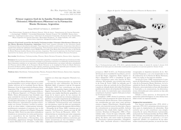 Primer registro fósil de la familia Trichomycteridae (Teleostei: Siluriformes; Plioceno) en la Formación Monte Hermoso, Argentina