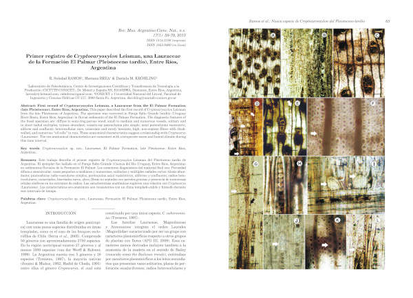 Primer registro de Cryptocaryoxylon Leisman, una Lauraceae de la Formación El Palmar (Pleistoceno tardío), Entre Ríos, Argentina