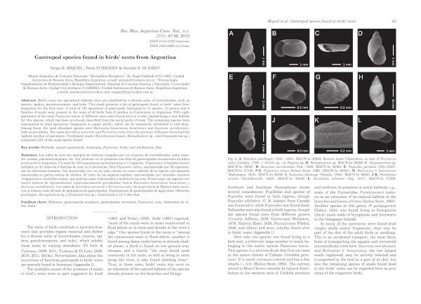 Gastropods living in a bird nest, and others pulmonate shells found in avian nests of Argentina