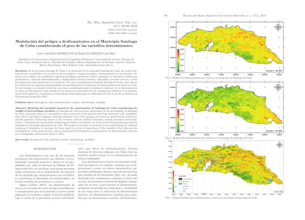 Modelación del peligro a deslizamientos en el Municipio Santiago de Cuba considerando el peso de las variables determinantes.
