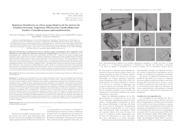 Consideraciones paleoambientales de sitios arqueológicos de las Sierras de Tandilia oriental (Pleistoceno Tardío- Holoceno Tardío) mediante el estudio de sus registros biosilíceos