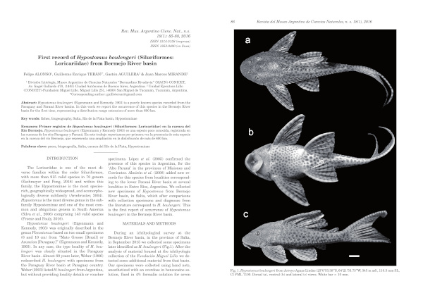 First record of Hypostomus boulengeri (Siluriformes: 1 Loricariidae) from Río Bermejo basin.