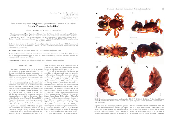 Una nueva especie del género Epicratinus Jocqué & Baert de Bolivia (Araneae: Zodariidae).