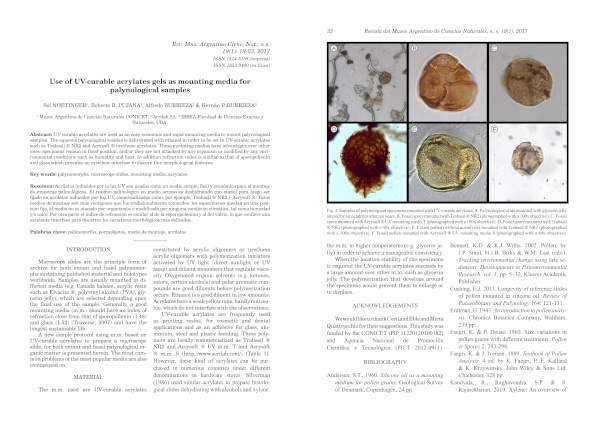 Use of UV-curable acrylates gels as mounting media for palynological samples