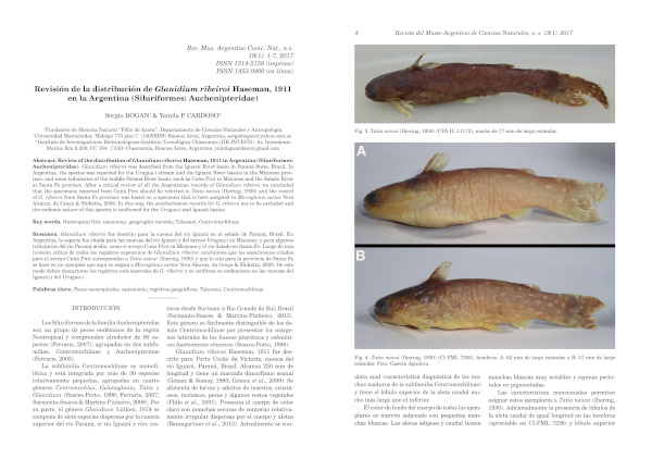 Revisión sobre la distribución de Glanidium Riberoi Haseman, 1911 en Argentina