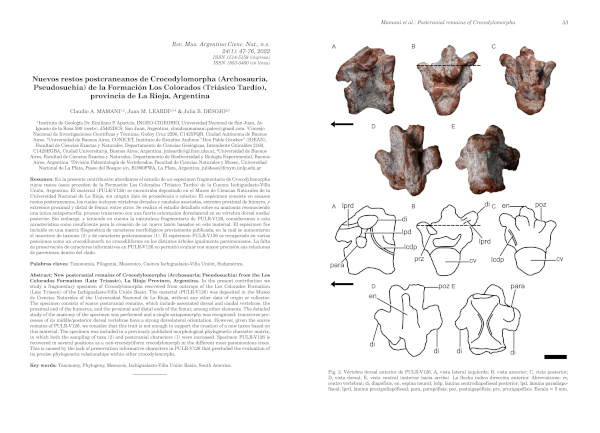 Nuevos restos postcraneanos de Crocodylomorpha (Archosauria, Pseudosuchia) de la Formación Los Colorados (Triásico Tardío), Provincia de La Rioja, Argentina