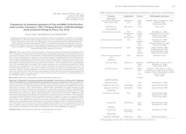 (Linnaeus, 1758) (Chimaeriformes: Callorhinchidae) from artisanal fishing in Pisco, Ica, Peru