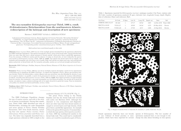 Théel, 1886 n. comb.(Echinodermata: Holothuroidea) from the southwestern Atlantic,redescription of the holotype and description of new specimens