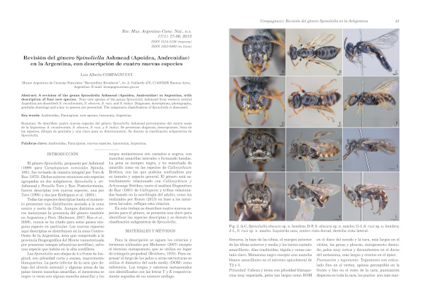 Revisión del género Spinoliella Ashmead (Apoidea, Andrenidae) en la Argentina, con descripción de cuatro nuevas especies