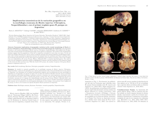 Implicancias taxonómicas de la variación geográfica en la morfología craneana de Myotis riparius (Chiroptera, Vespertilionidae), con el primer registro para M. pampa en Argentina